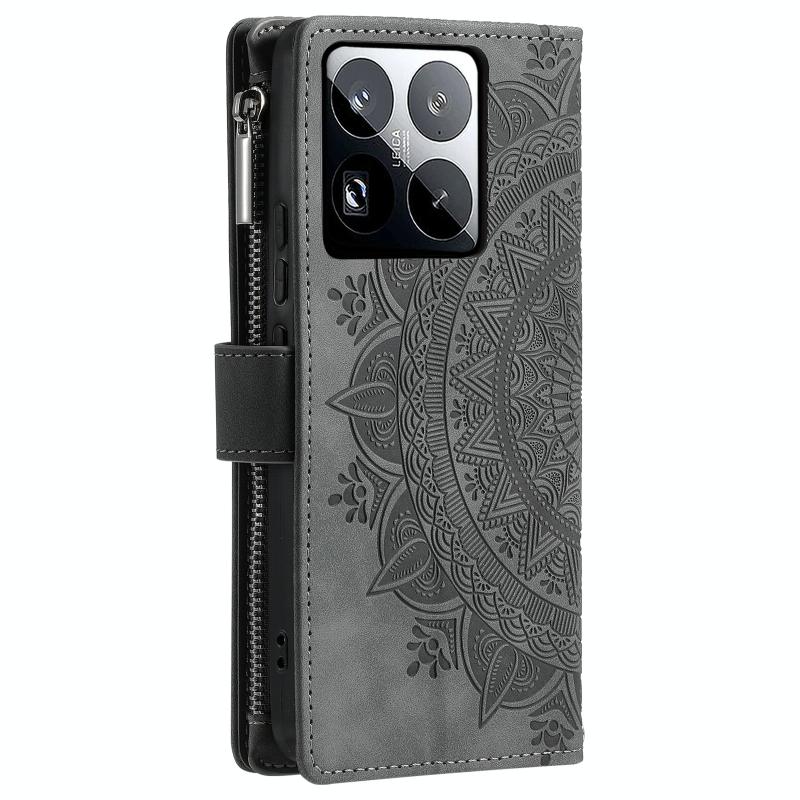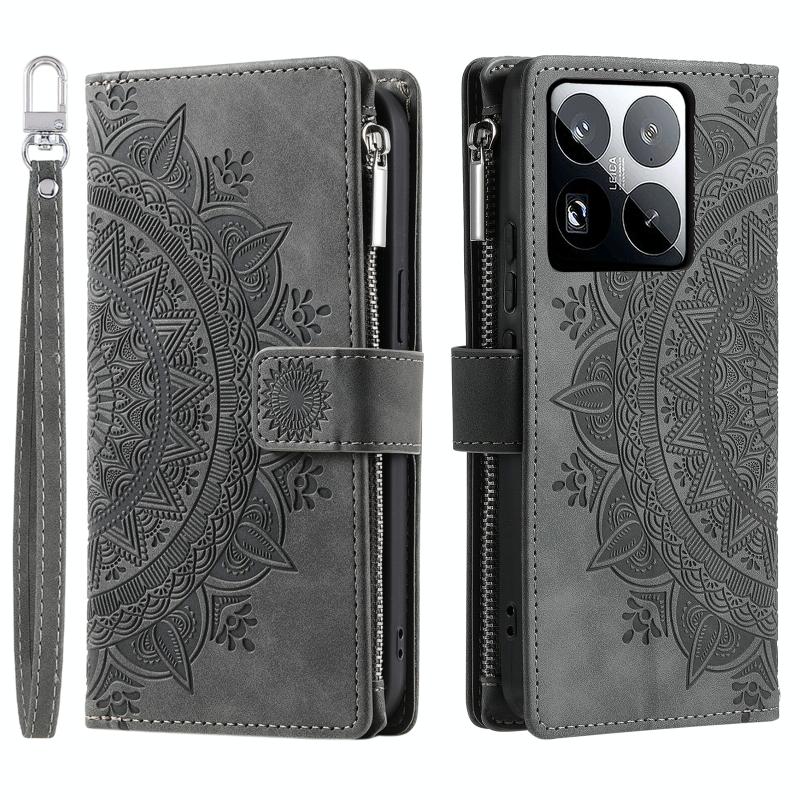 For Xiaomi 15 Pro Multi-Card Totem Zipper Leather Phone Case(Grey)