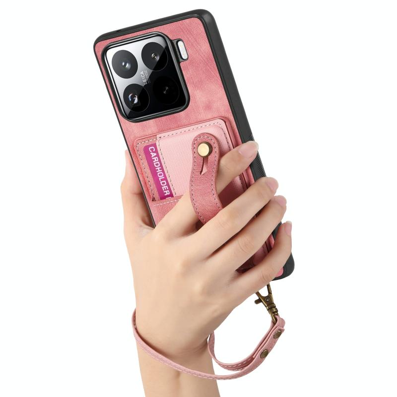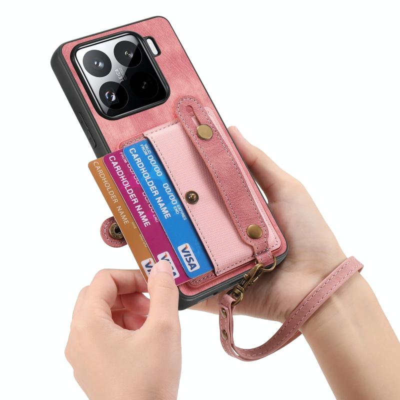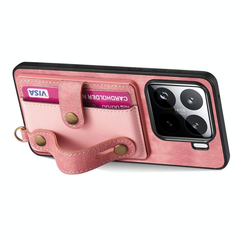 For Xiaomi 15 Pro Retro Cross Wristband Wallet Leather Back Phone Case(Pink)