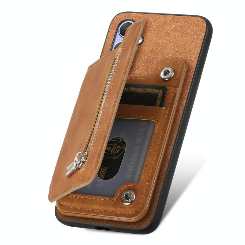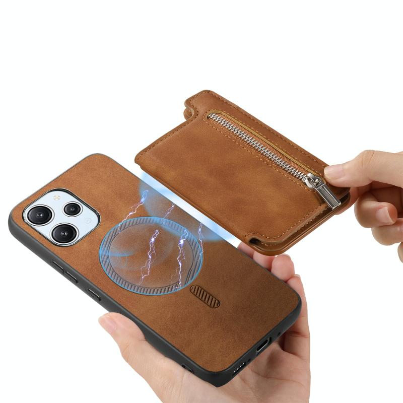 For Xiaomi 15 Pro Retro MagSafe Zipper Wallet Card Bag Back Phone Case(Brown)