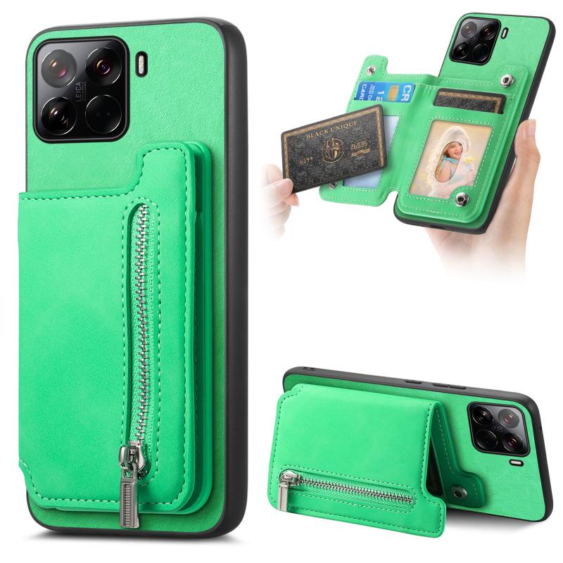 For Xiaomi 15 Pro Retro MagSafe Zipper Wallet Card Bag Back Phone Case(Green)