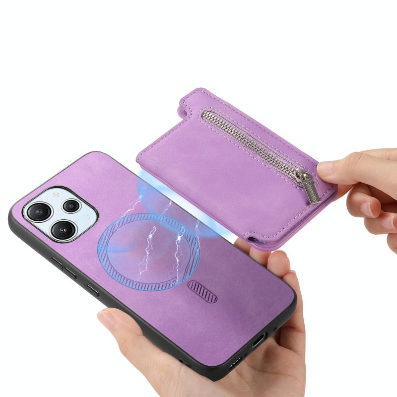 For Xiaomi 15 Pro Retro MagSafe Zipper Wallet Card Bag Back Phone Case(Purple)