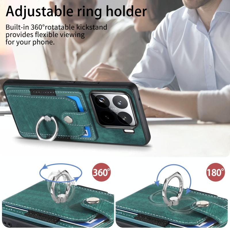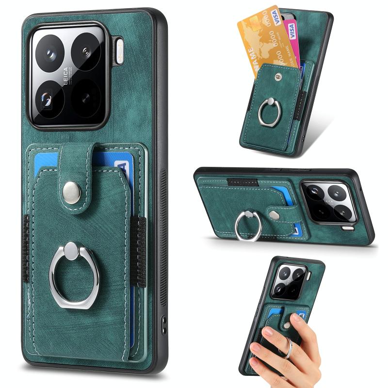 For Xiaomi 15 Pro Retro Skin-feel Ring Card Wallet Phone Case(Green)