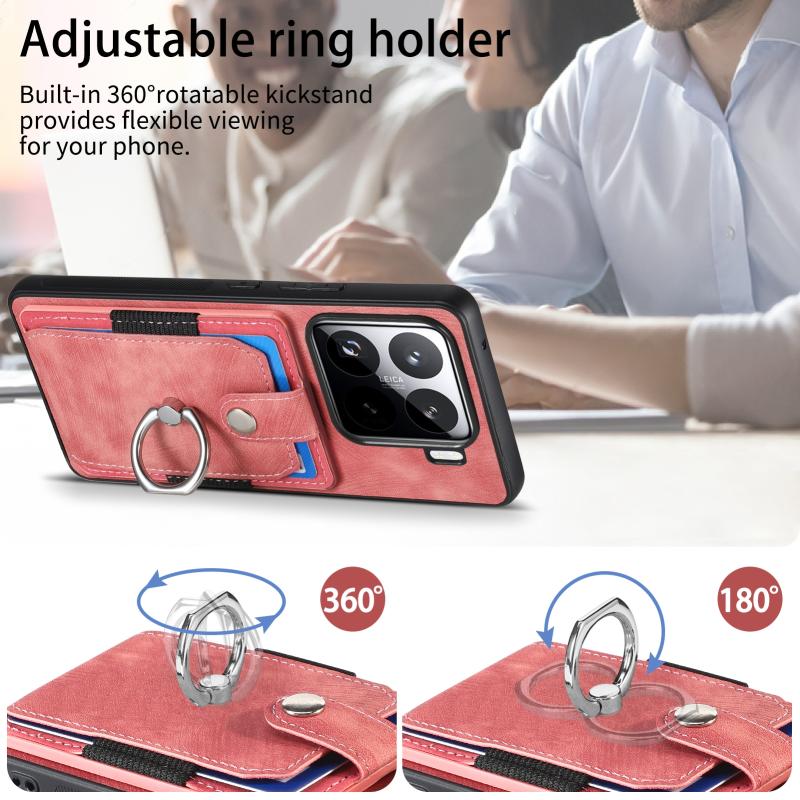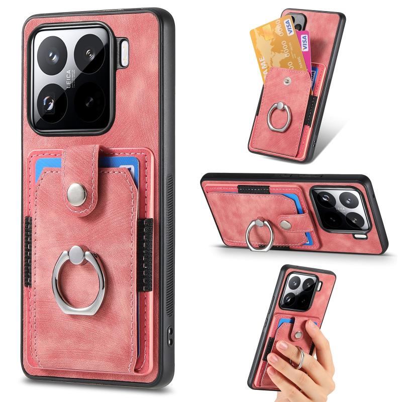 For Xiaomi 15 Pro Retro Skin-feel Ring Card Wallet Phone Case(Pink)