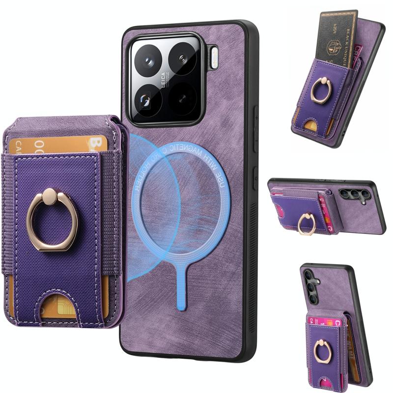 For Xiaomi 15 Pro Retro Splitable Magnetic Stand Card Bag Leather Phone Case(Purple)