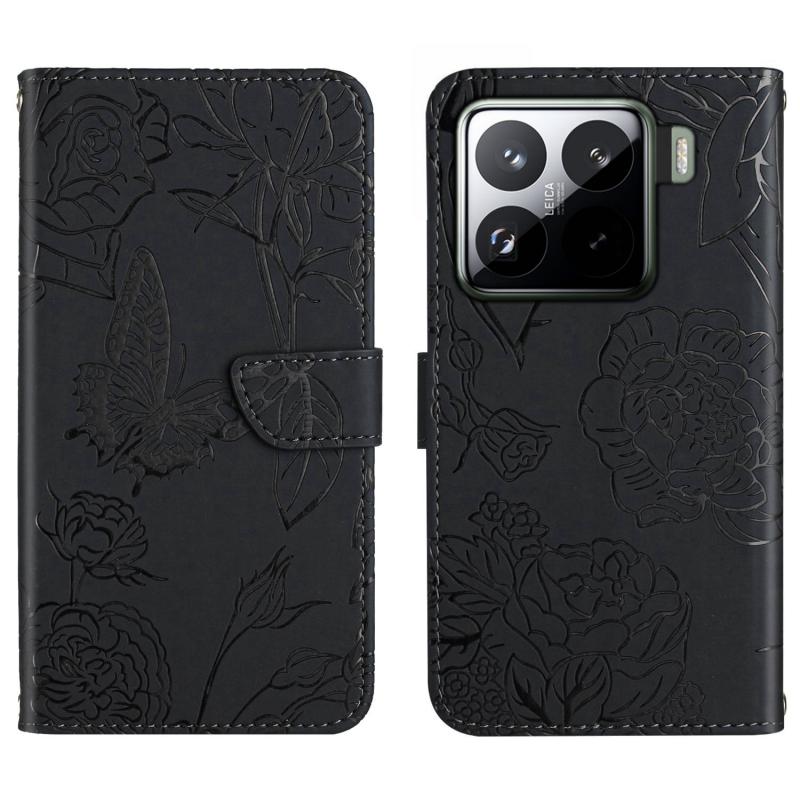 For Xiaomi 15 Pro Skin Feel Butterfly Embossed Flip Leather Phone Case(Black)
