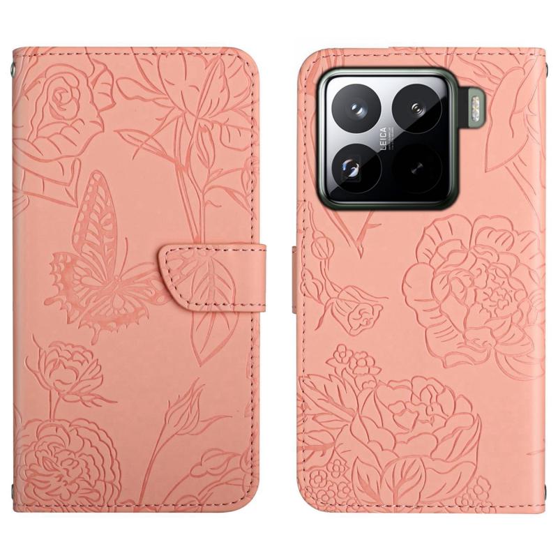 For Xiaomi 15 Pro Skin Feel Butterfly Embossed Flip Leather Phone Case(Pink)