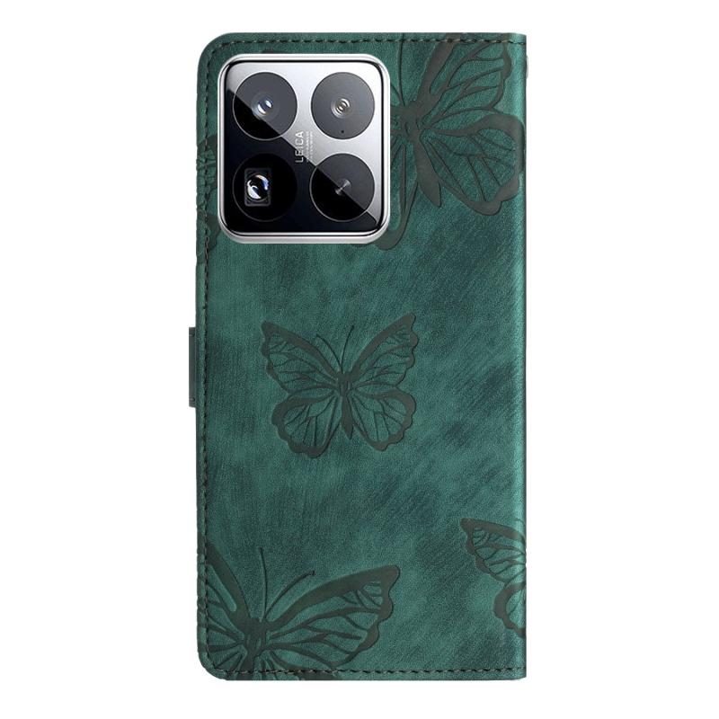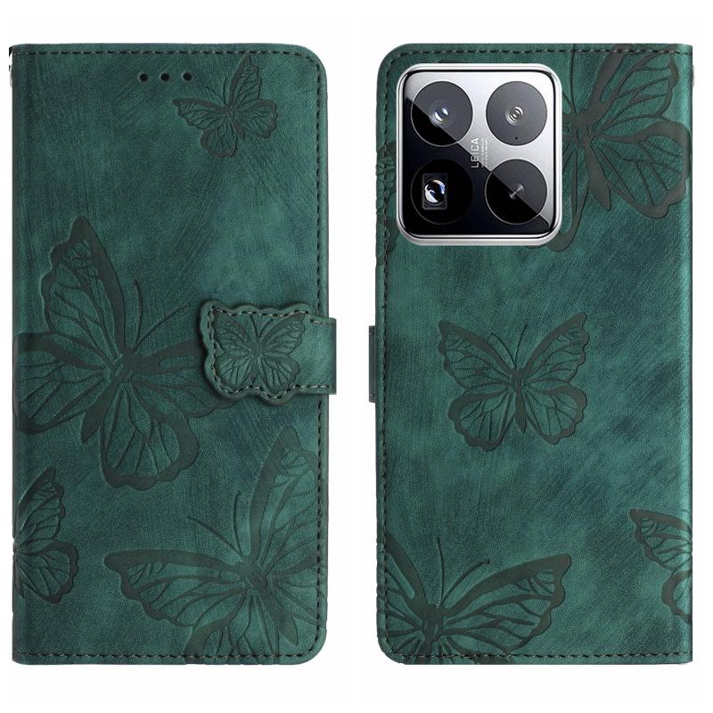 For Xiaomi 15 Pro Skin-feel Embossed Butterfly Leather Phone Case(Green)
