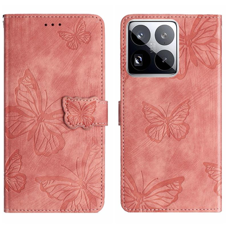 For Xiaomi 15 Pro Skin-feel Embossed Butterfly Leather Phone Case(Pink)