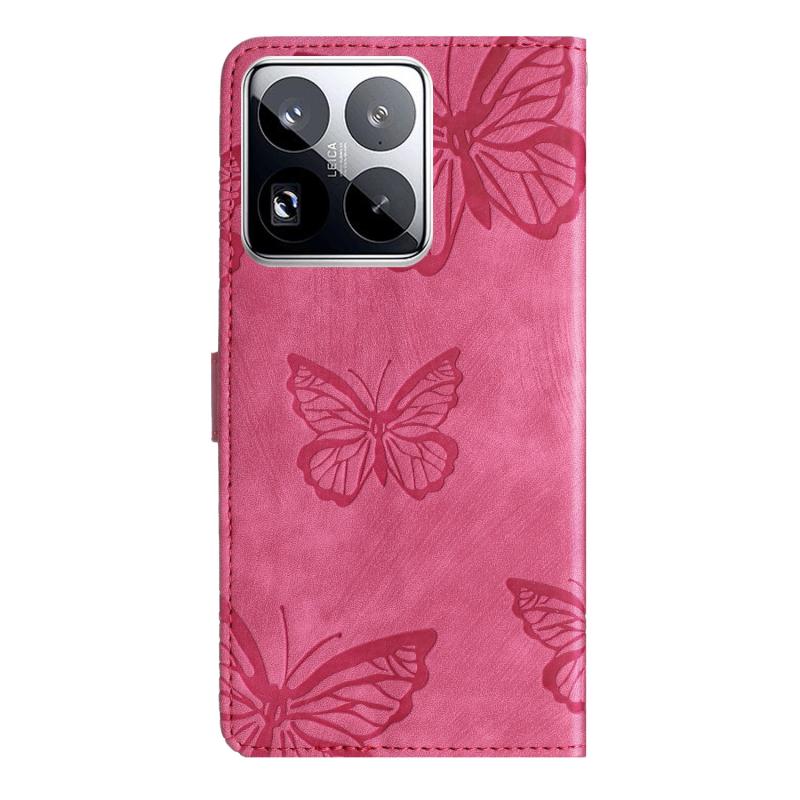 For Xiaomi 15 Pro Skin-feel Embossed Butterfly Leather Phone Case(Rose Red)