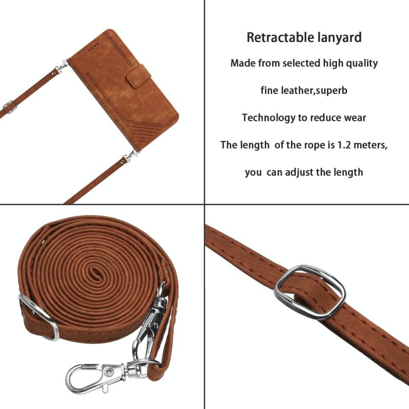 For Xiaomi 15 Pro Skin Feel Stripe Pattern Leather Phone Case with Lanyard(Brown)