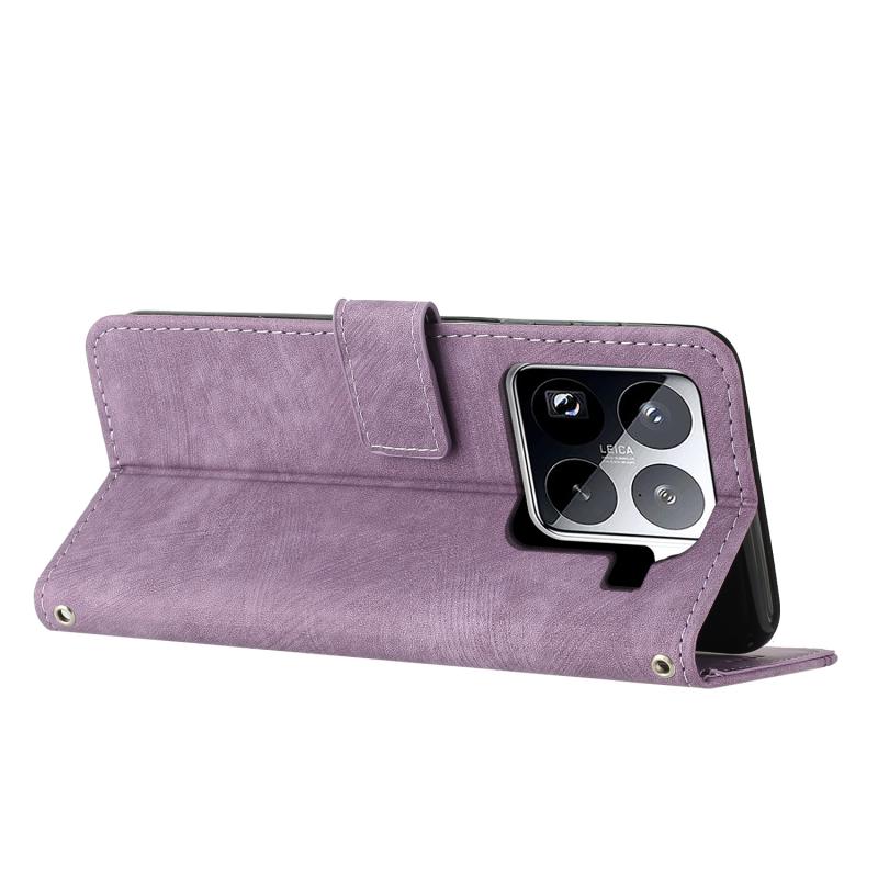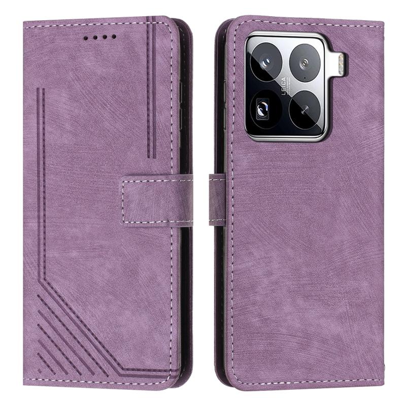 For Xiaomi 15 Pro Skin Feel Stripe Pattern Leather Phone Case with Lanyard(Purple)