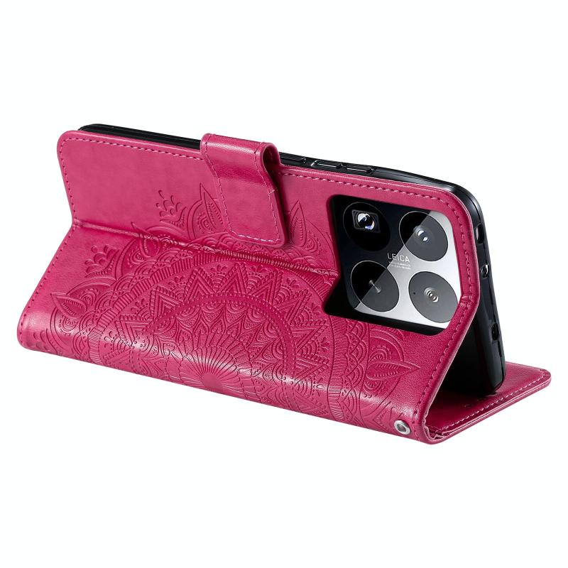 For Xiaomi 15 Pro Totem Flower Embossed Leather Phone Case with Lanyard(Red)