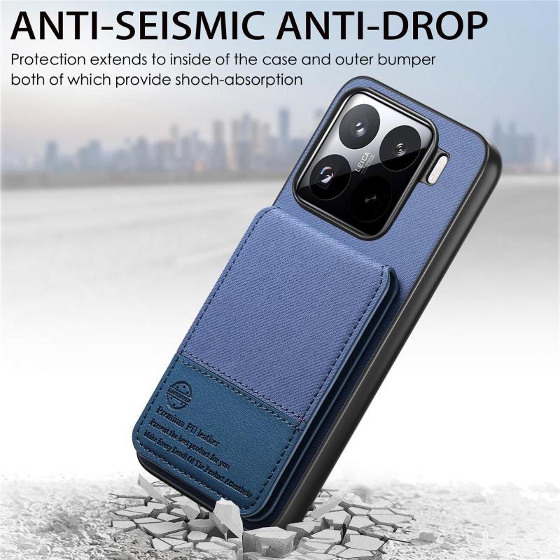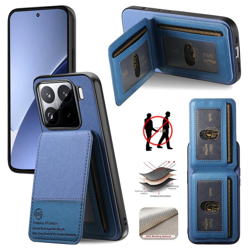 For Xiaomi 15 Pro Twill Fabric Leather Vertical Flip RFID Card Bag Phone Case(Blue)