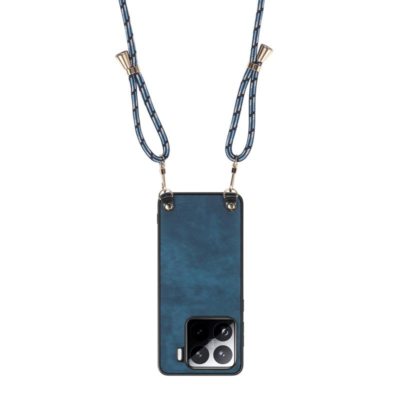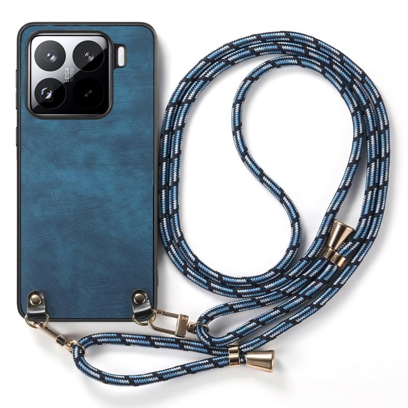 For Xiaomi 15 Pro Vintage Leather PC Back Cover Phone Case with Crossbody Strap(Blue)