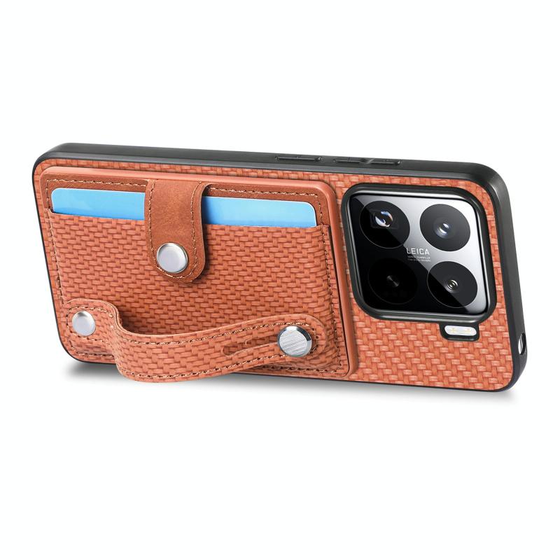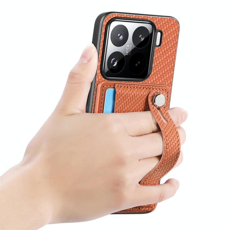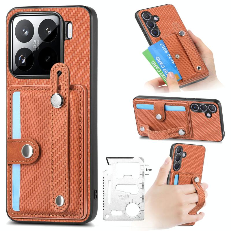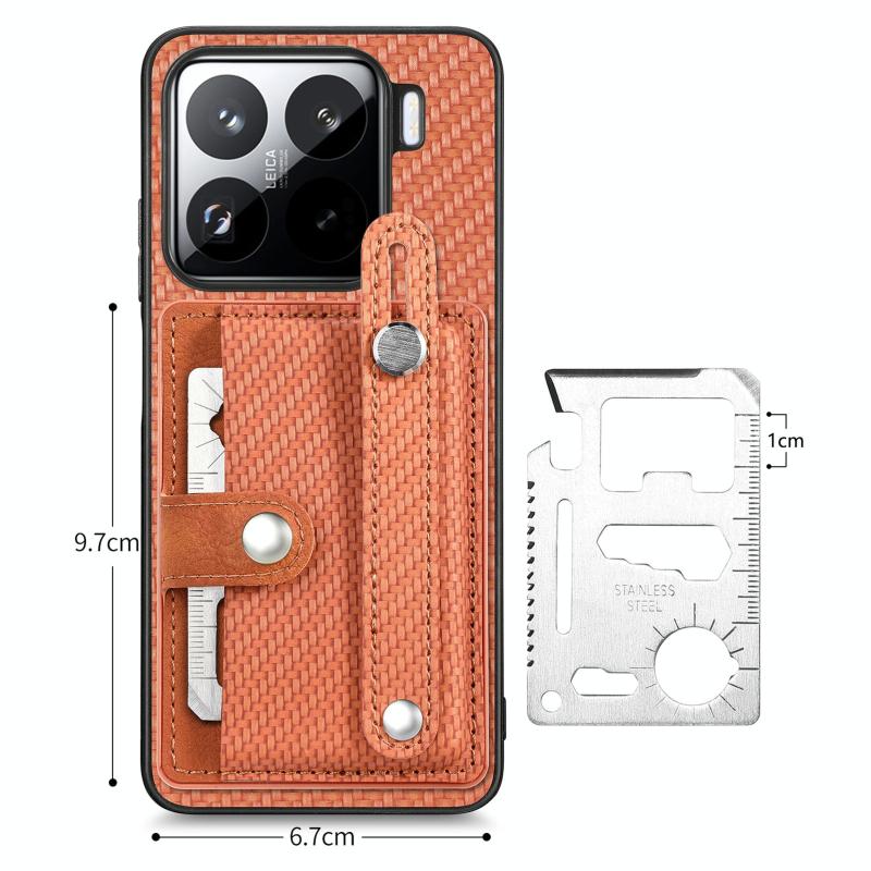 For Xiaomi 15 Pro Wristband Kickstand Card Wallet Back Phone Case with Tool Knife(Brown)