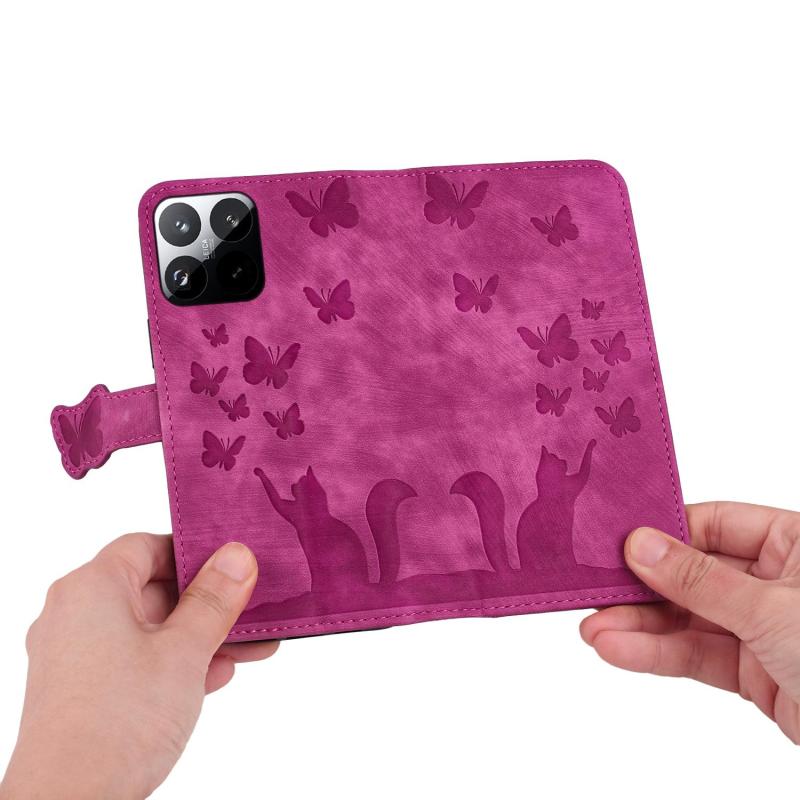 For Xiaomi 15T 5G Butterfly Cat Embossing Flip Leather Phone Case(Pink)