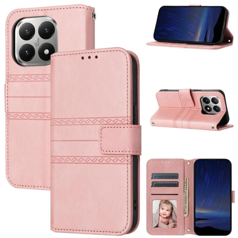 For Xiaomi 15T 5G Embossed Stripes Skin Feel Leather Phone Case(Pink)