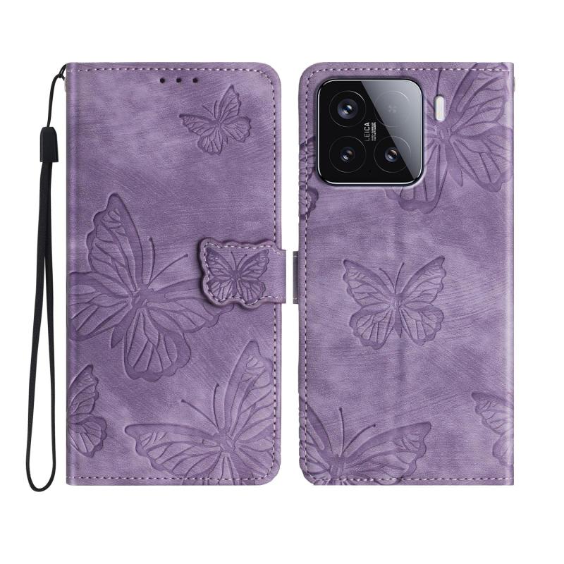 For Xiaomi 15T 5G Skin-feel Embossed Butterfly Leather Phone Case(Purple)