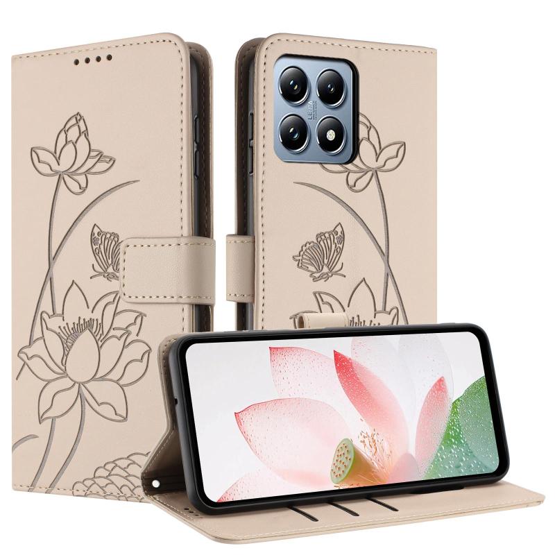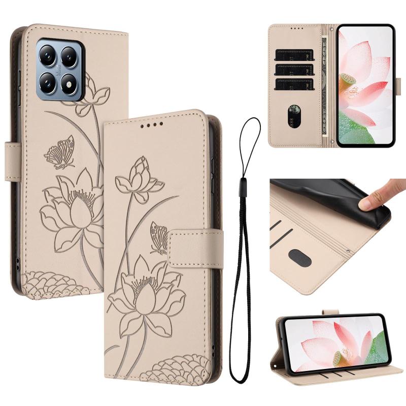 For Xiaomi 15T Lotus Embossed Leather Phone Case with Lanyard(Beige)