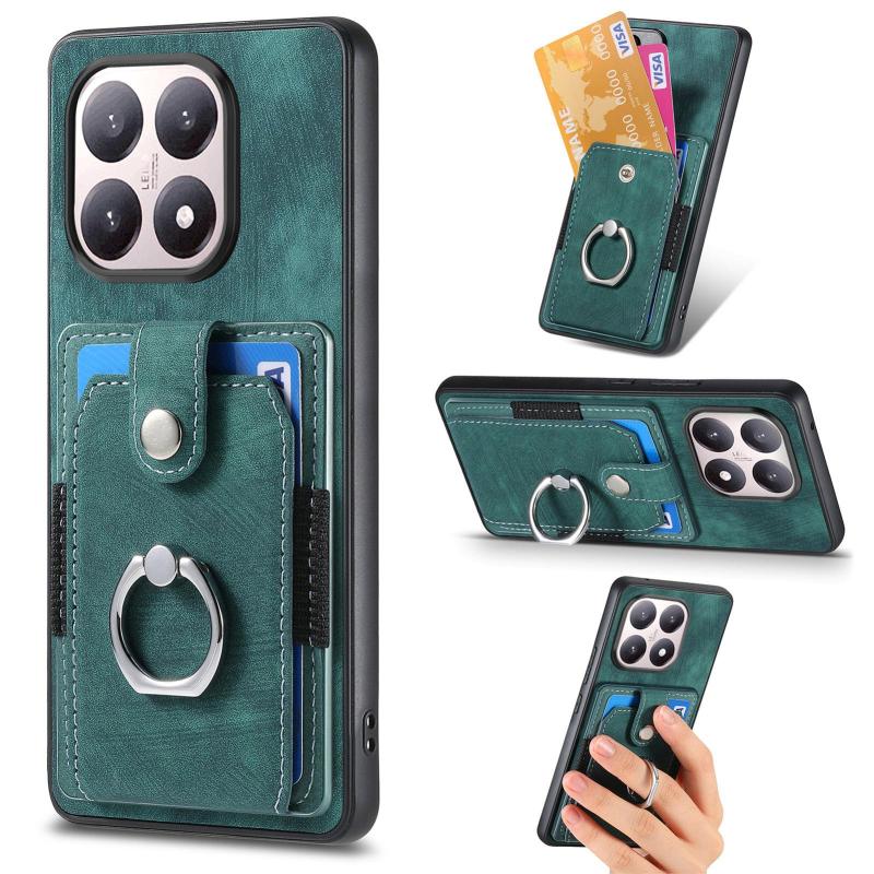 For Xiaomi 15T Retro Skin-feel Ring Card Wallet Phone Case(Green)