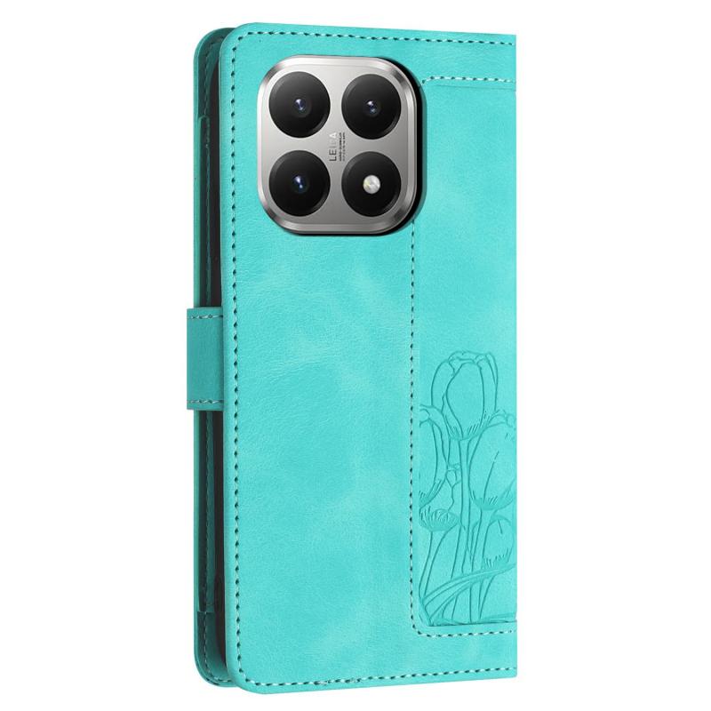 For Xiaomi 15T Tulips Embossed Leather Phone Case with Lanyard(Green)