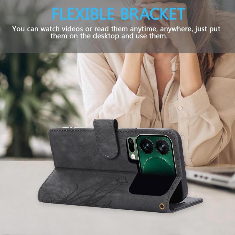 For Xiaomi 17 Pro Orchid Butterfly Embossed Leather Phone Case(Black)