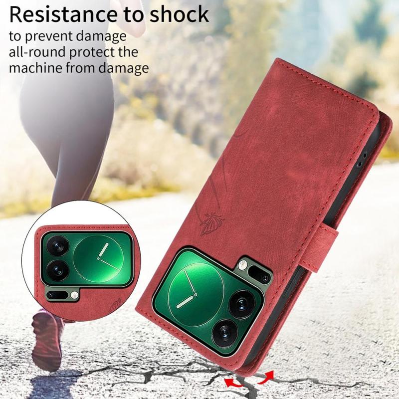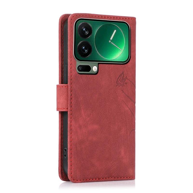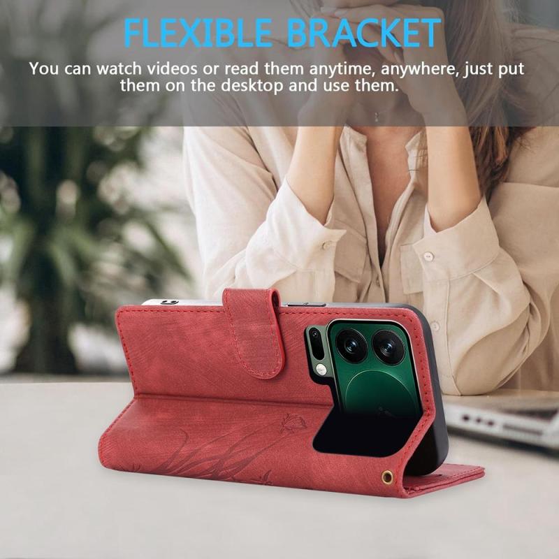 For Xiaomi 17 Pro Orchid Butterfly Embossed Leather Phone Case(Red)