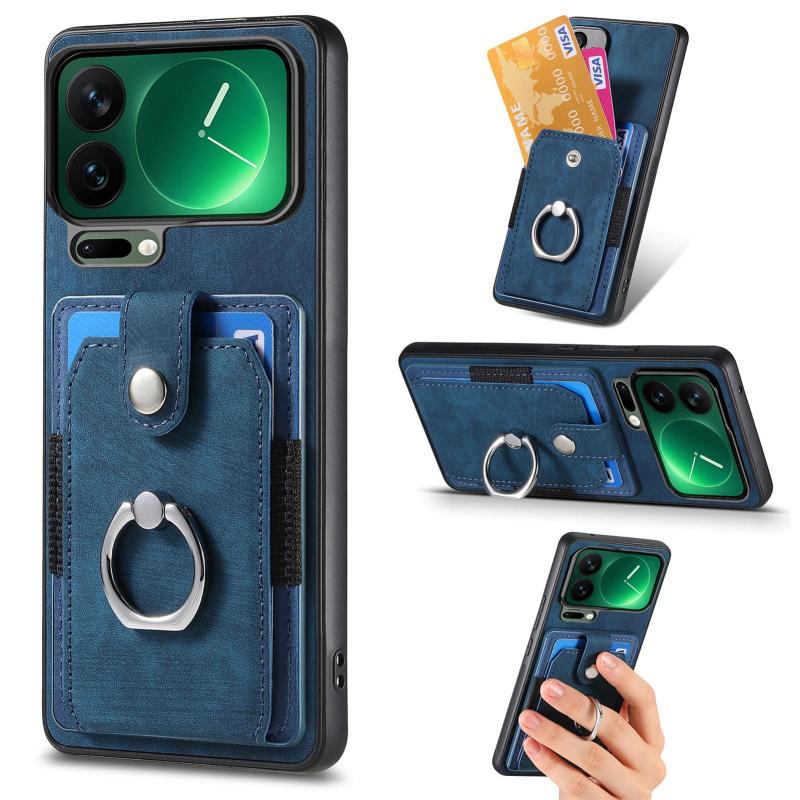 For Xiaomi 17 Pro Retro Skin-feel Ring Card Wallet Phone Case(Blue)