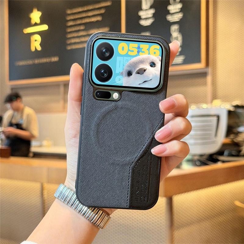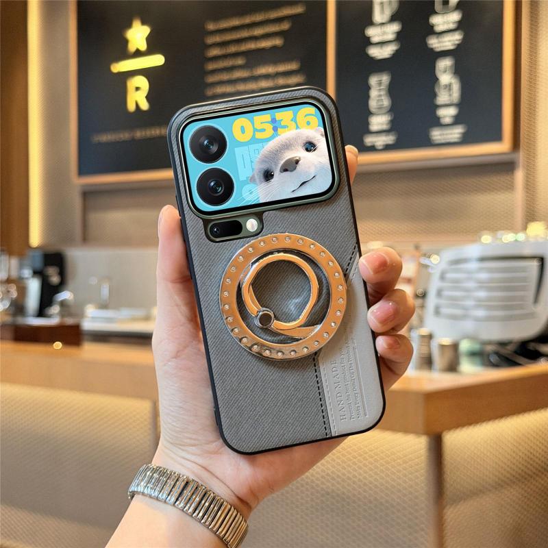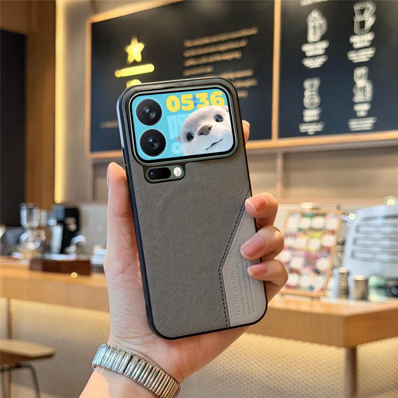 For Xiaomi 17 Pro Splicing Fabric Magnetic PU Back Cover Phone Case(Gray)