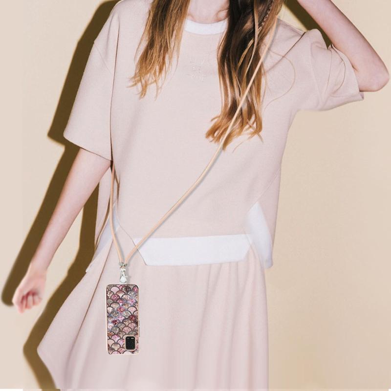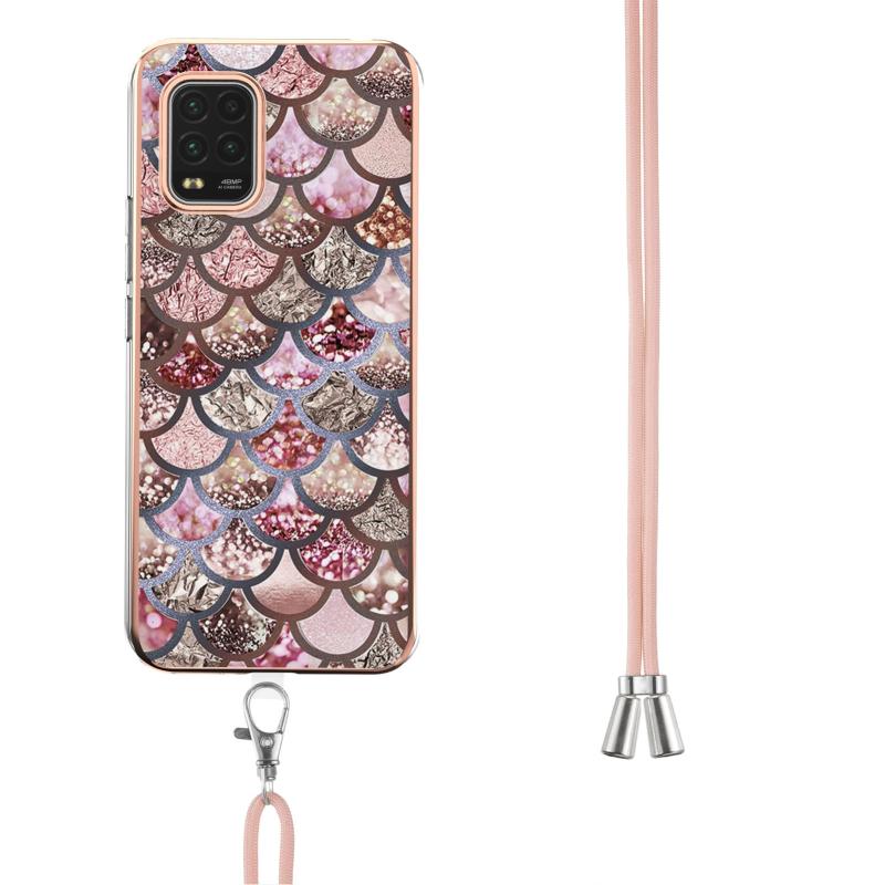 For Xiaomi Mi 10 Lite 5G Electroplating Pattern IMD TPU Shockproof Case with Neck Lanyard(Pink Scales)