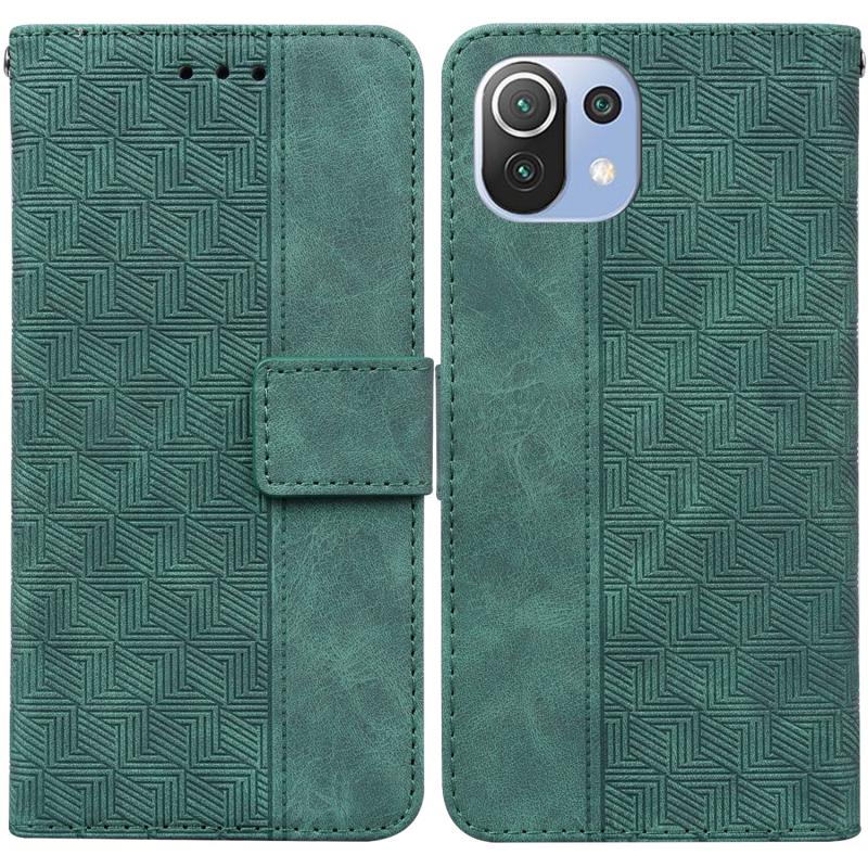 For Xiaomi Mi 11 Lite 5G / 4G Geometric Embossed Leather Phone Case(Green)