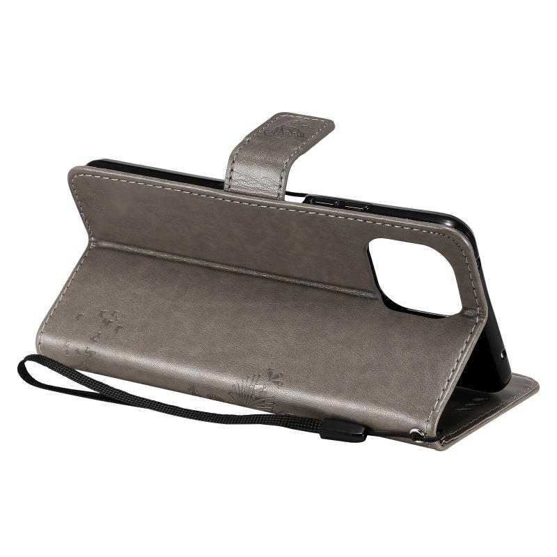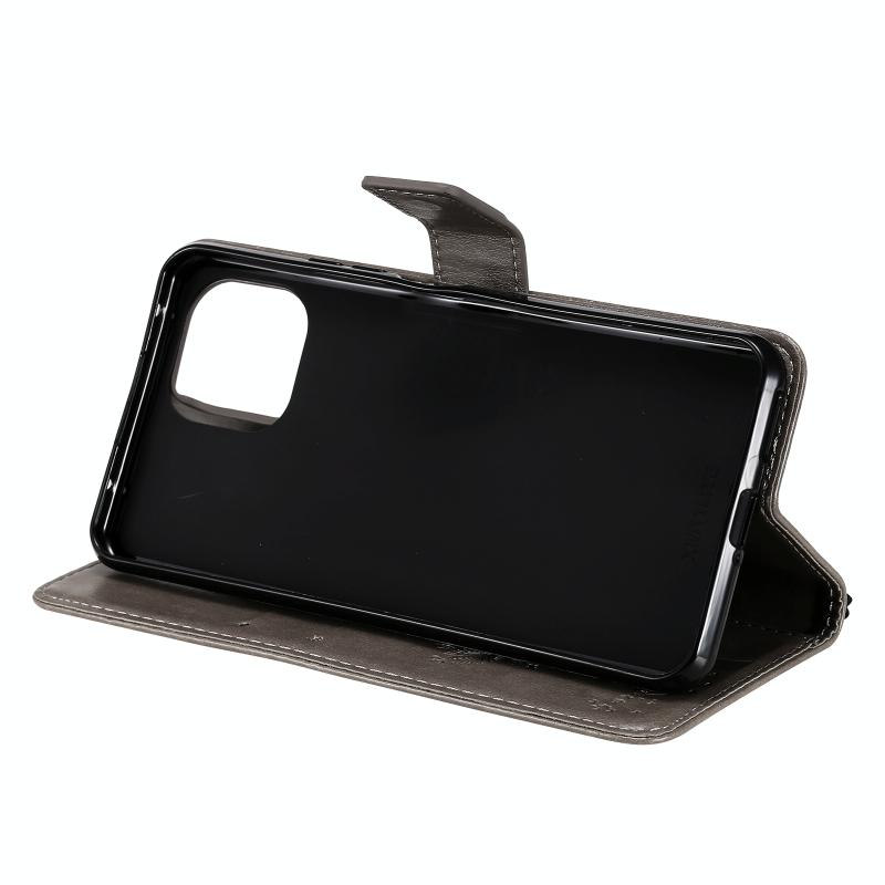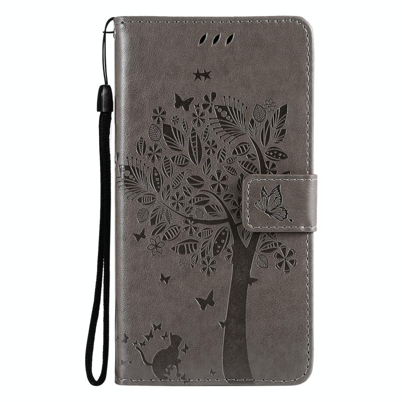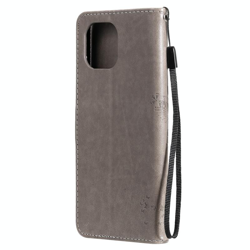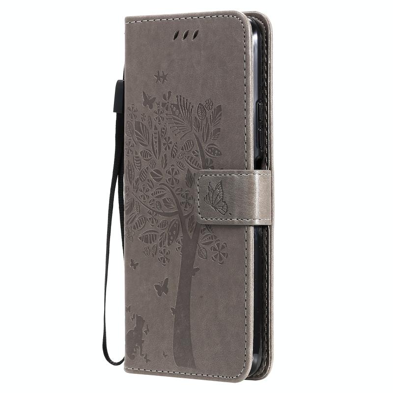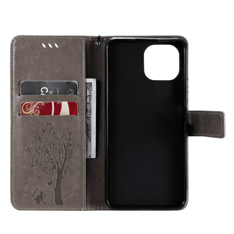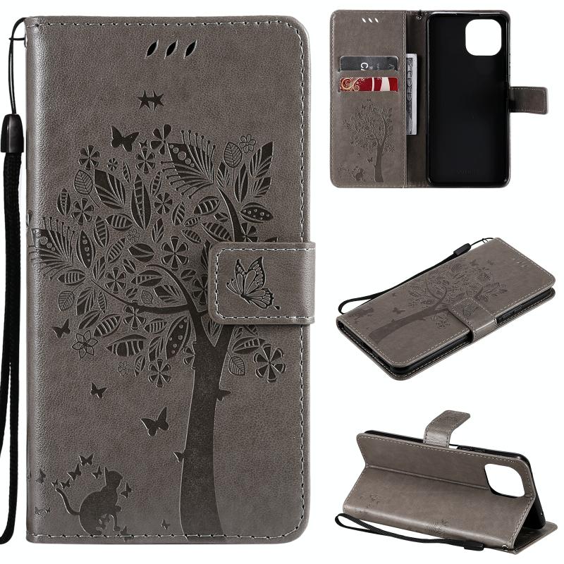 For Xiaomi Mi 11 Lite 5G Tree & Cat Pattern Pressed Printing Horizontal Flip PU Leather Case with Holder & Card Slots & Wallet & Lanyard(Gray) (Diaobaolee)