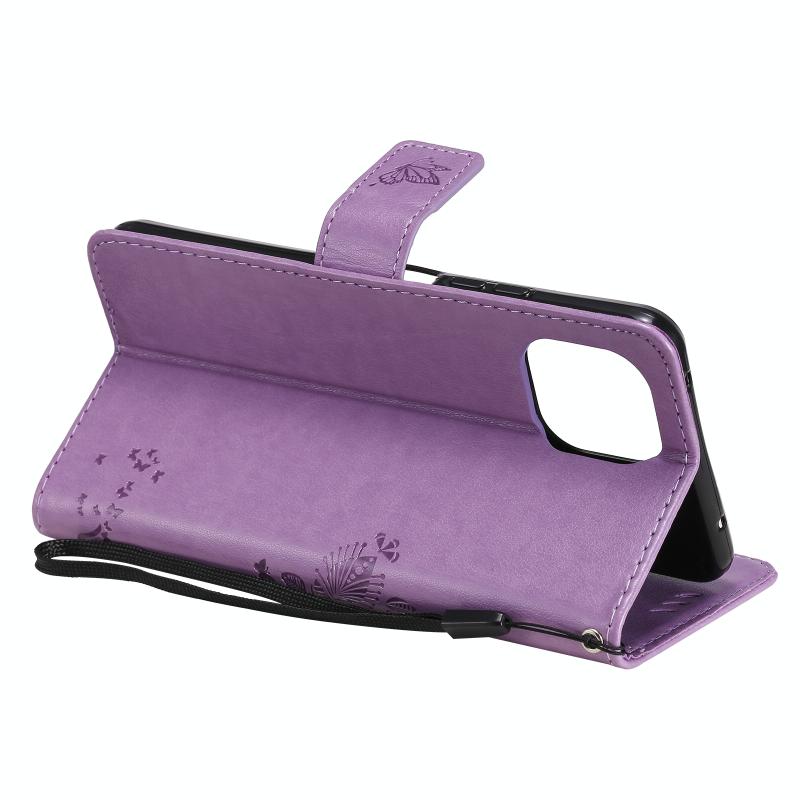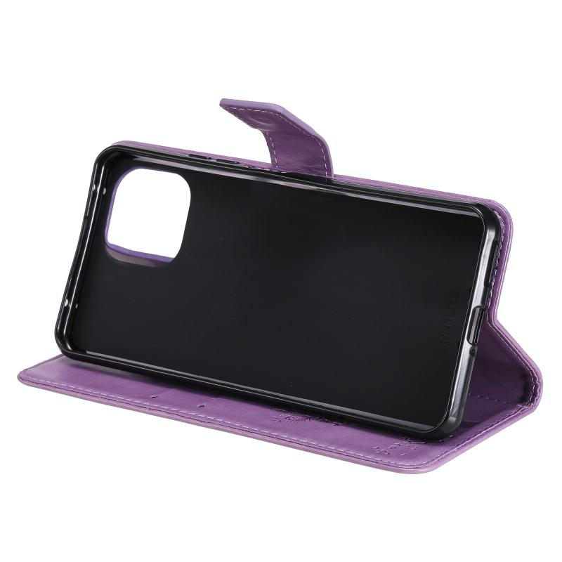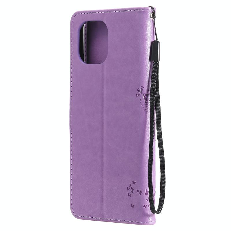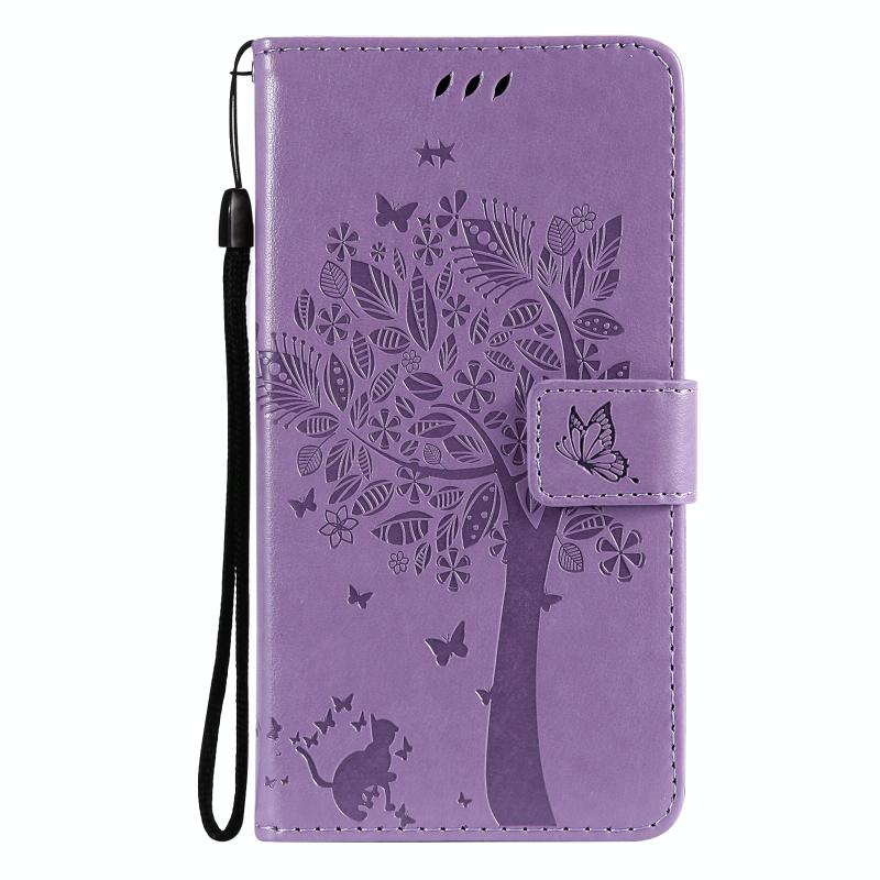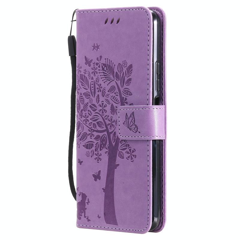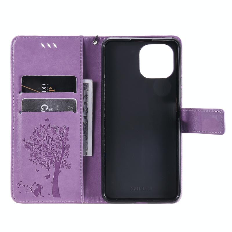 For Xiaomi Mi 11 Lite 5G Tree & Cat Pattern Pressed Printing Horizontal Flip PU Leather Case with Holder & Card Slots & Wallet & Lanyard(Light Purple) (Diaobaolee)
