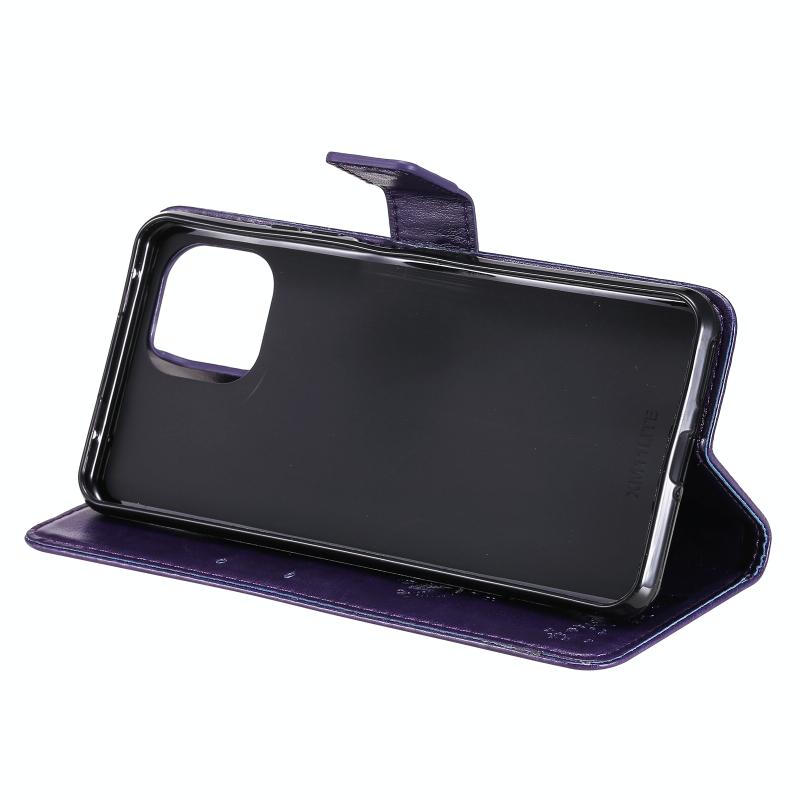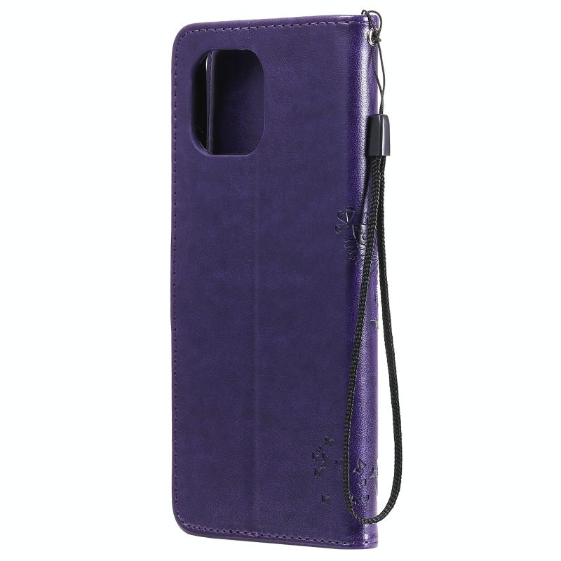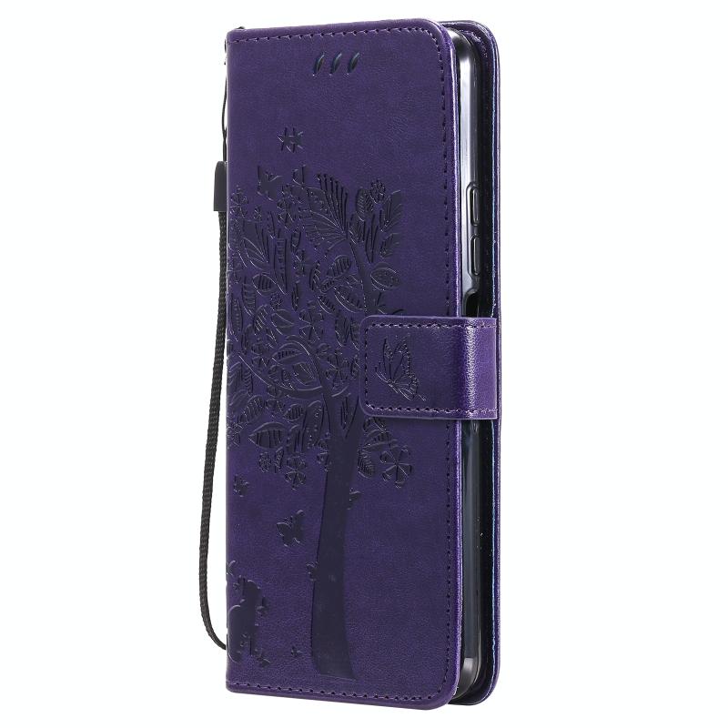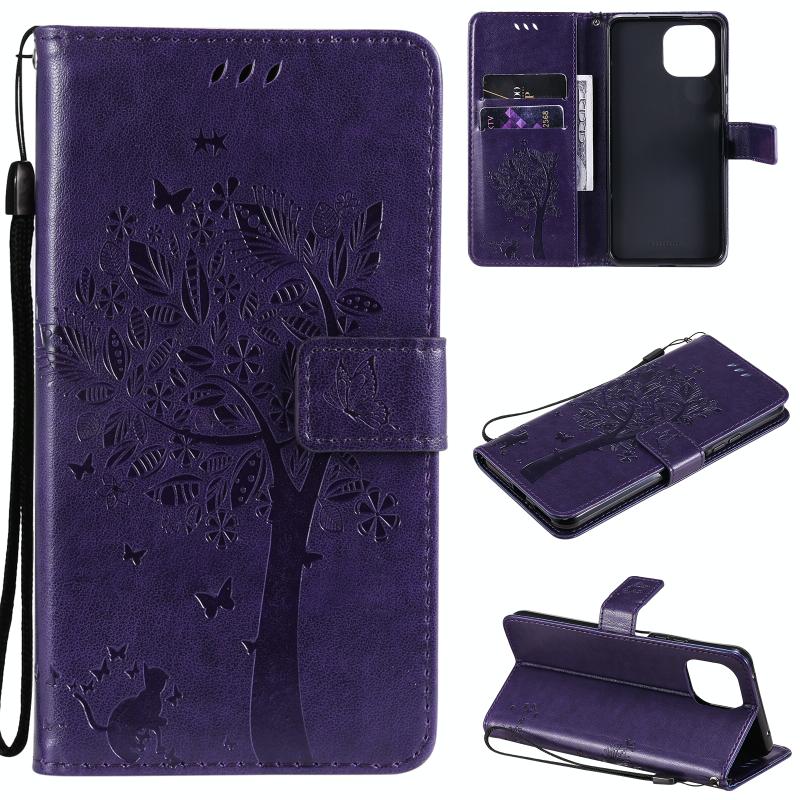 For Xiaomi Mi 11 Lite 5G Tree & Cat Pattern Pressed Printing Horizontal Flip PU Leather Case with Holder & Card Slots & Wallet & Lanyard(Purple) (Diaobaolee)