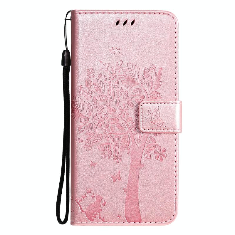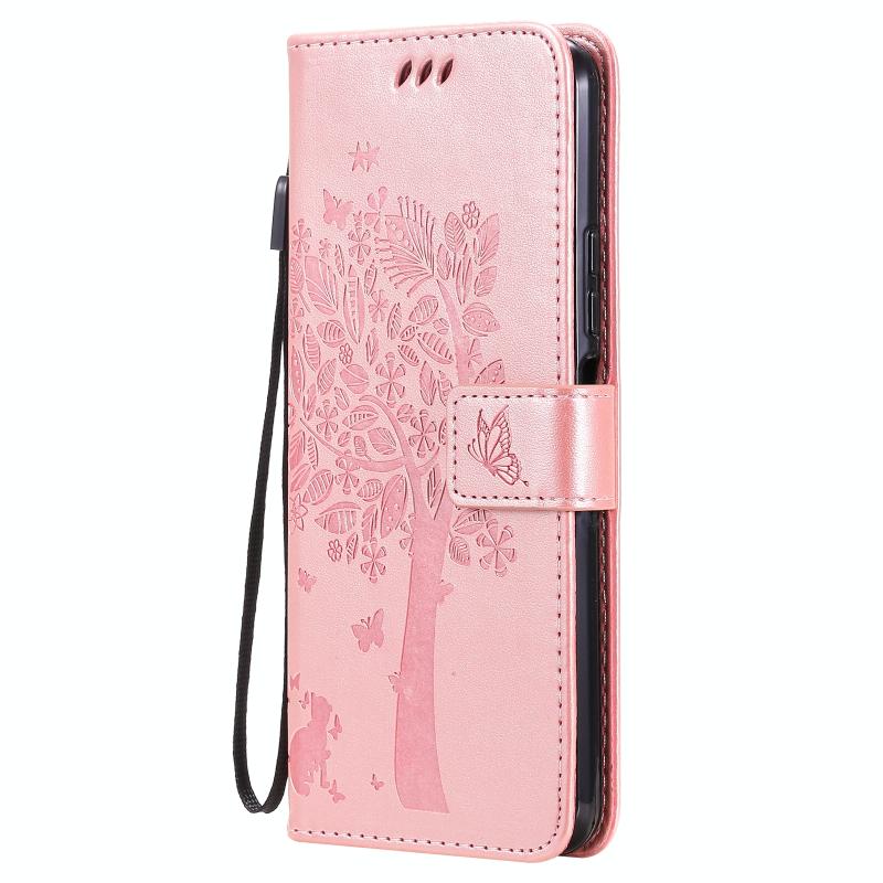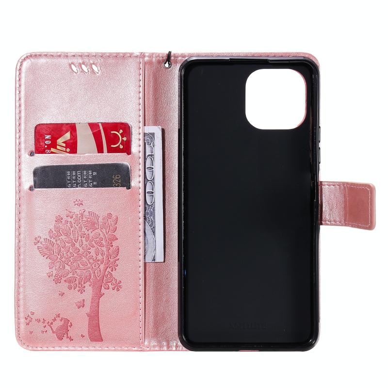 For Xiaomi Mi 11 Lite 5G Tree & Cat Pattern Pressed Printing Horizontal Flip PU Leather Case with Holder & Card Slots & Wallet & Lanyard(Rose Gold) (Diaobaolee)