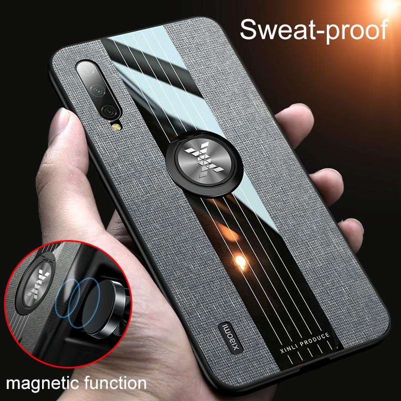 For Xiaomi Mi CC9e XINLI Stitching Cloth Texture Shockproof TPU Protective Case with Ring Holder(Brown) (XINLI)