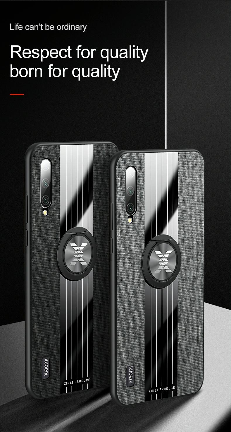 For Xiaomi Mi CC9e XINLI Stitching Cloth Texture Shockproof TPU Protective Case with Ring Holder(Gray) (XINLI)