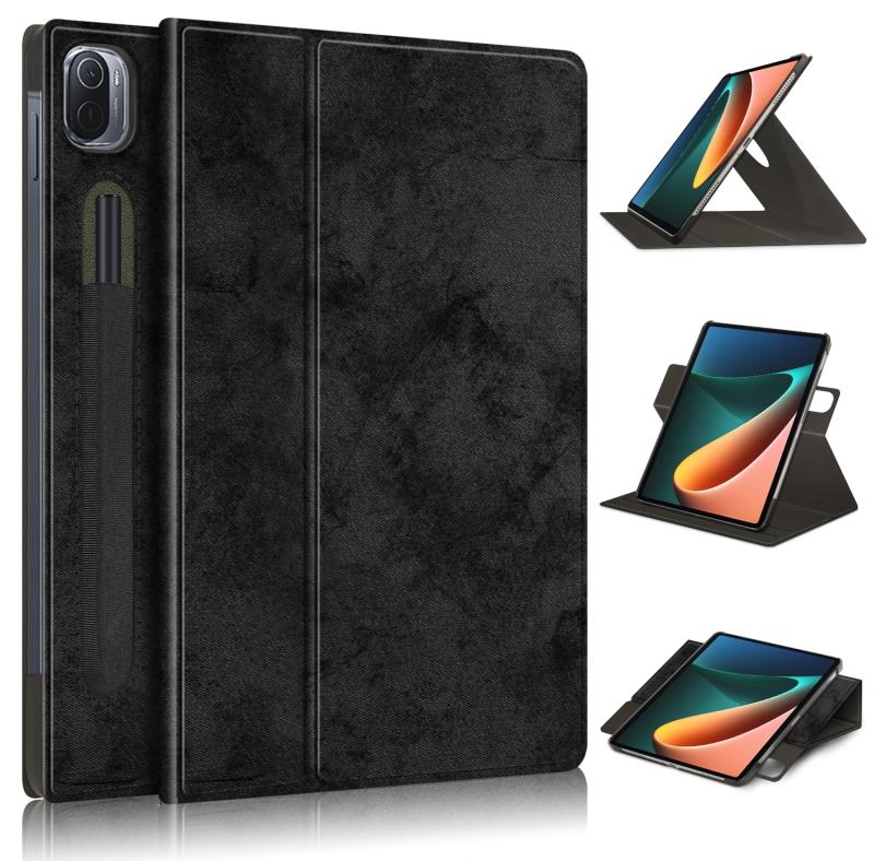 For Xiaomi Mi Pad 5 Solid Color 360 Degrees Rotation Tablet Leather Case with Holder(Black)