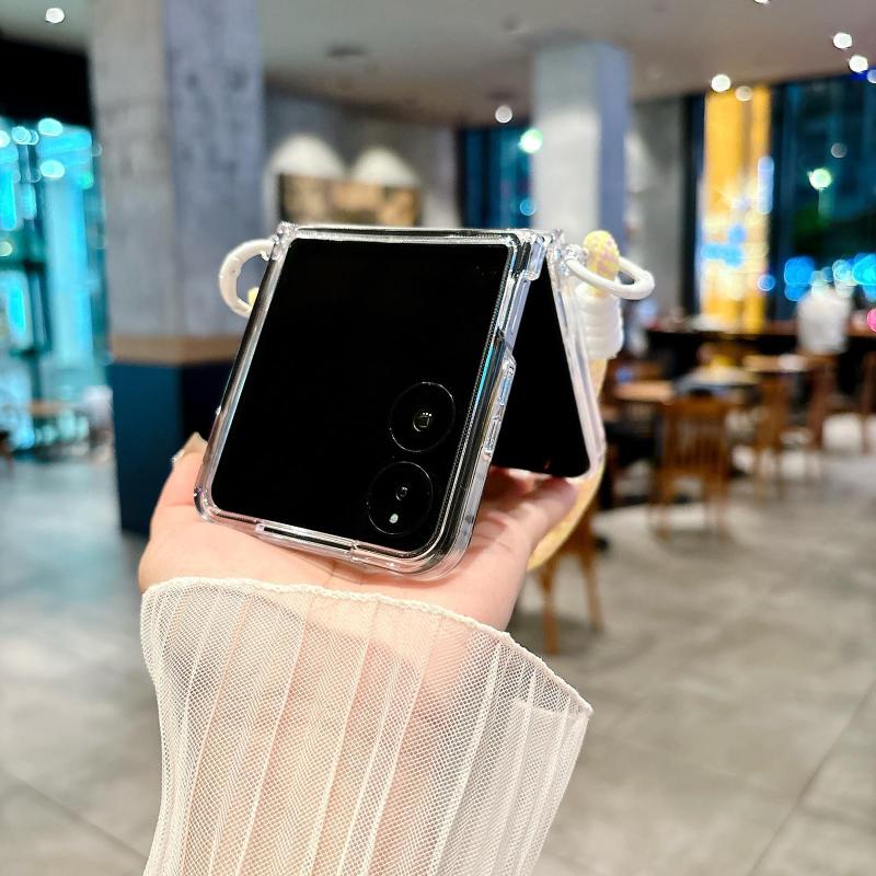 For Xiaomi Mix Flip 2 Pearlescent Shell Texture Side Buckle Phone Case with Rainbow Bracelet(Red)