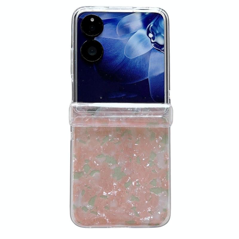 For Xiaomi Mix Flip 2 Three-piece Set Pearlescent Shell Texture Phone Case(Pink Green)