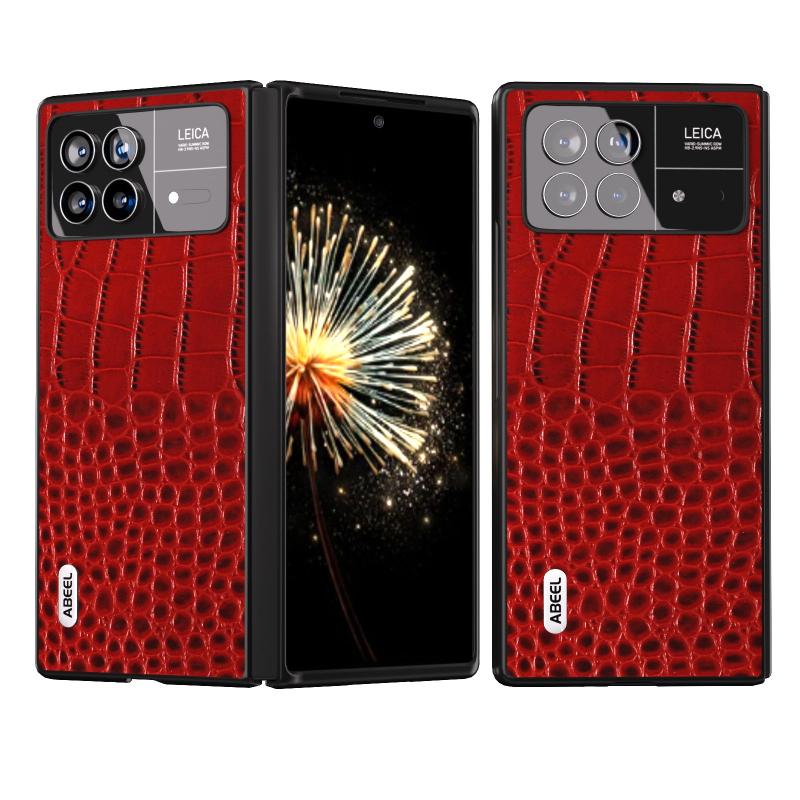 For Xiaomi Mix Fold 3 ABEEL Genuine Leather Crocodile Pattern Black Edge Phone Case(Red)