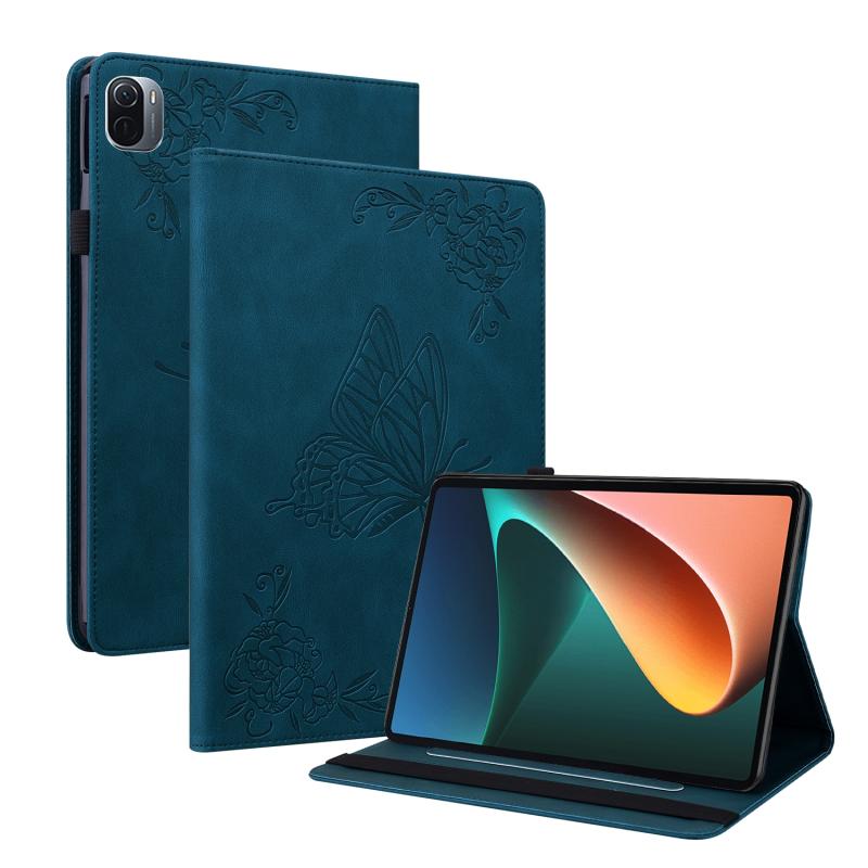 For Xiaomi Pad 5 / 5 Pro Butterfly Flower Embossed Leather Tablet Case(Blue)