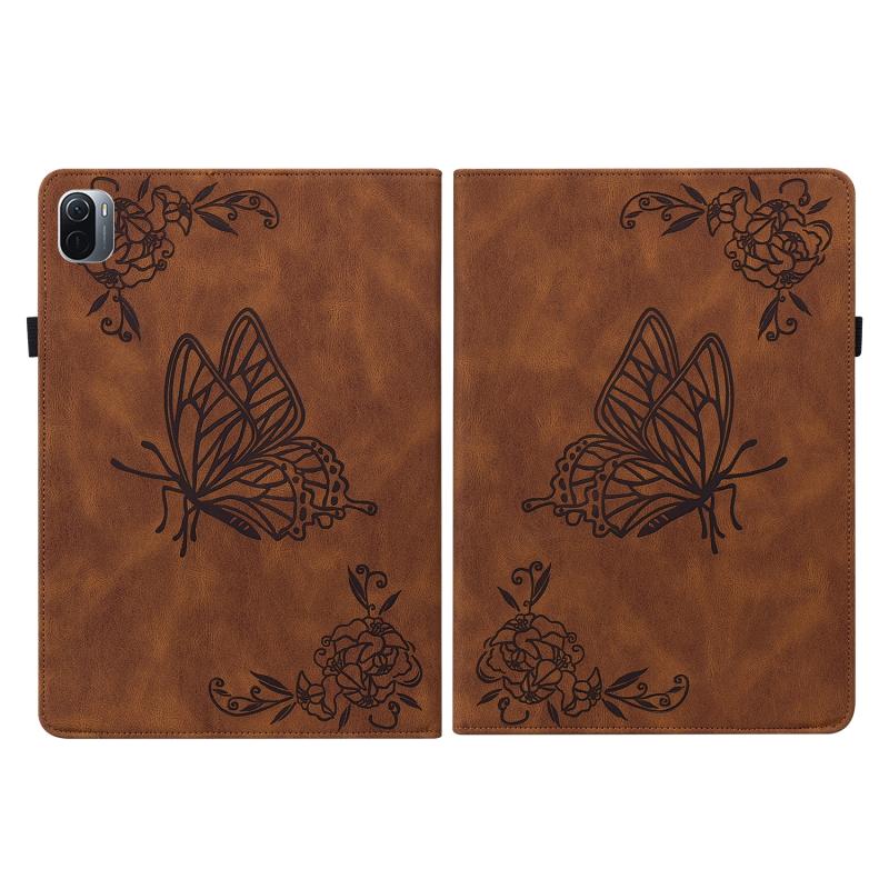 For Xiaomi Pad 5 / 5 Pro Butterfly Flower Embossed Leather Tablet Case(Brown)