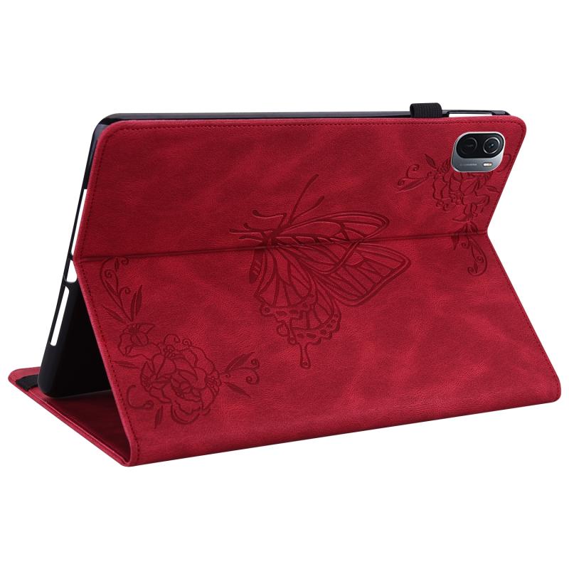 For Xiaomi Pad 5 / 5 Pro Butterfly Flower Embossed Leather Tablet Case(Red)