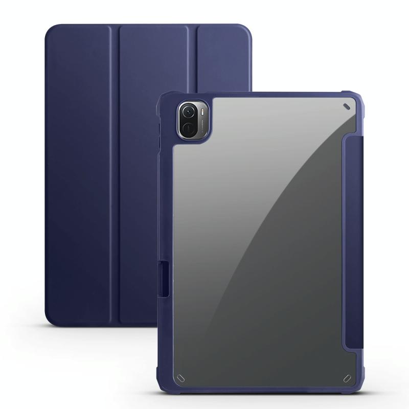 For Xiaomi Pad 5 Acrylic 3-folding Smart Leather Tablet Case(Dark Blue)