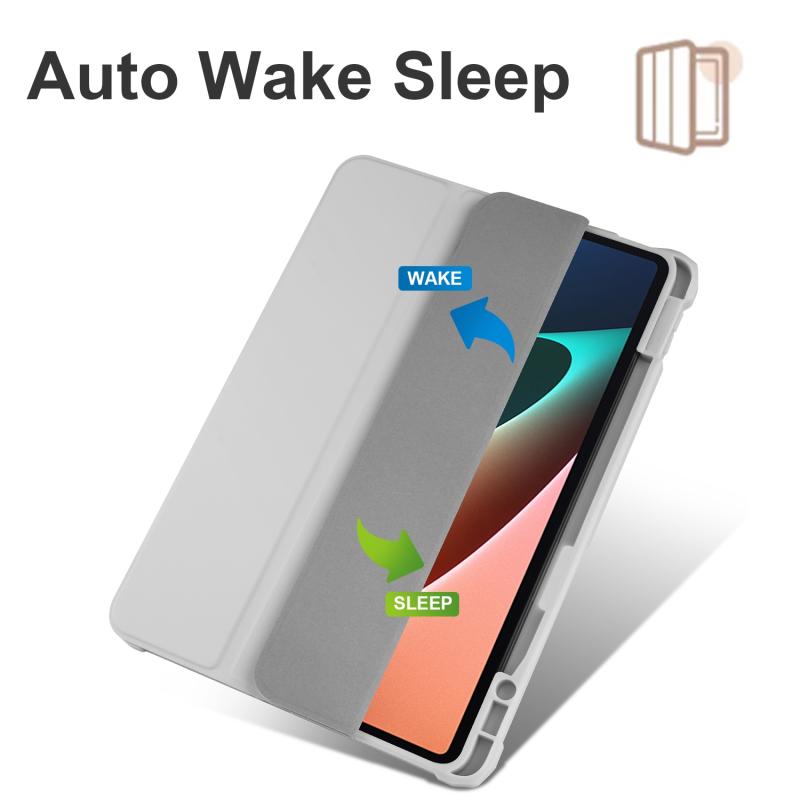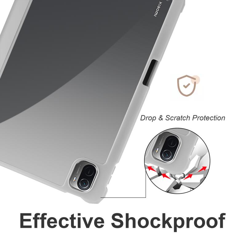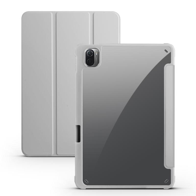 For Xiaomi Pad 5 Acrylic 3-folding Smart Leather Tablet Case(Grey)