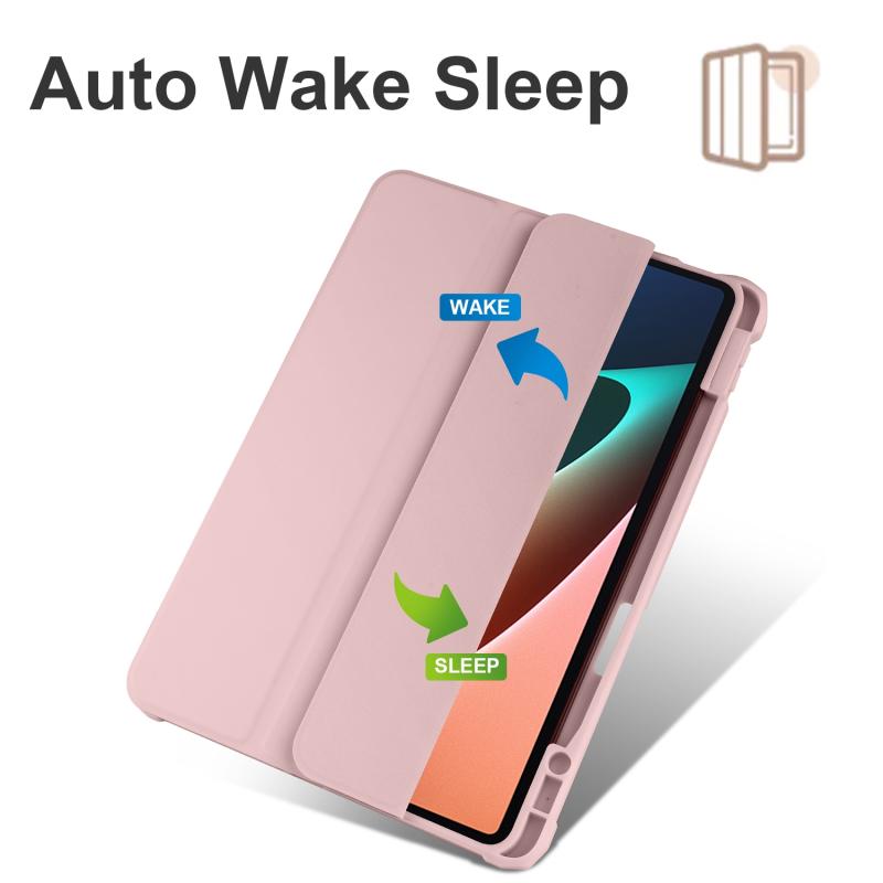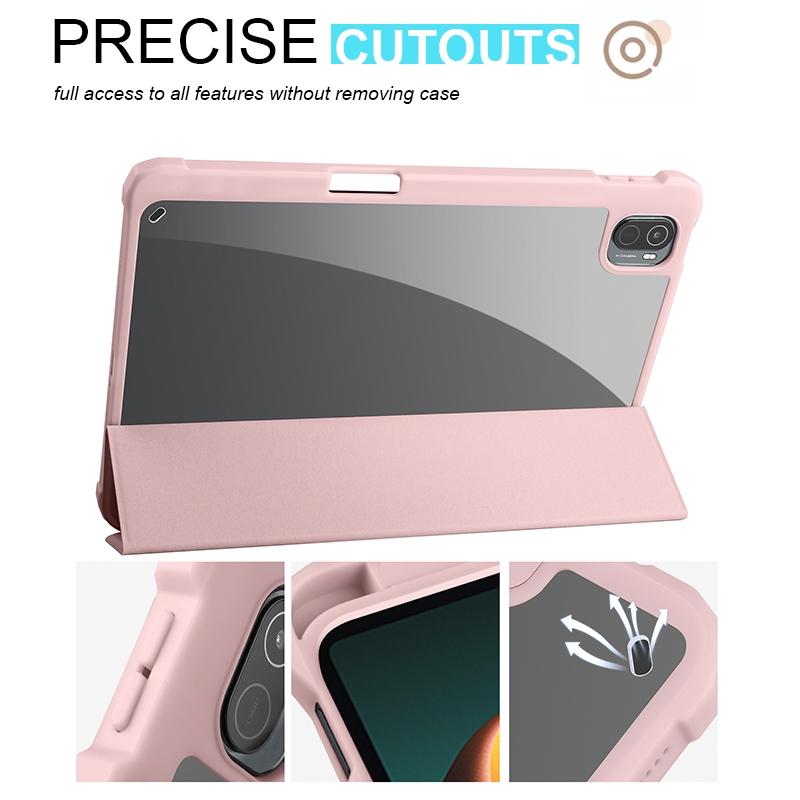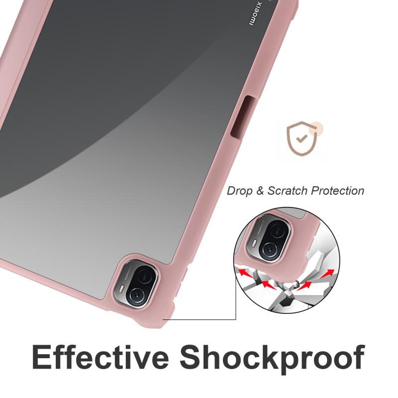 For Xiaomi Pad 5 Acrylic 3-folding Smart Leather Tablet Case(Ice Pink)