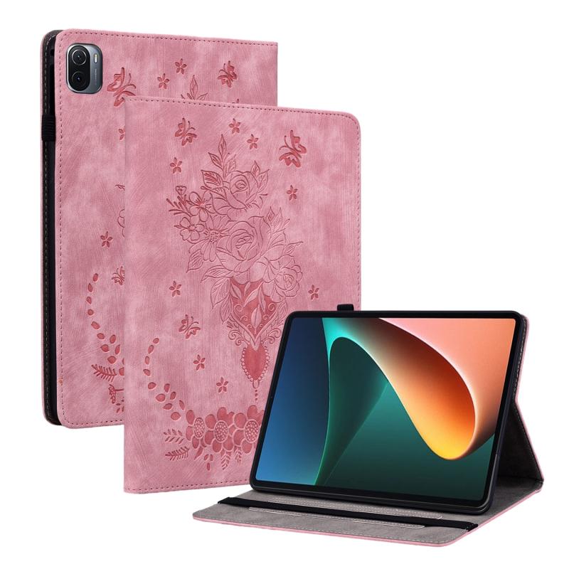 For Xiaomi Pad 5 / Pad 5 Pro Butterfly Rose Embossed Leather Smart Tablet Case(Pink)