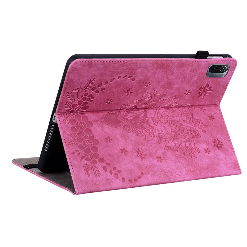 For Xiaomi Pad 5 / Pad 5 Pro Butterfly Rose Embossed Leather Smart Tablet Case(Rose Red)