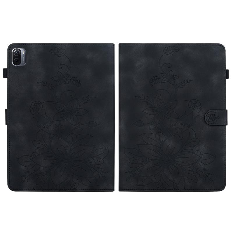 For Xiaomi Pad 5 / Pad 5 Pro Lily Embossed Leather Smart Tablet Case(Black)